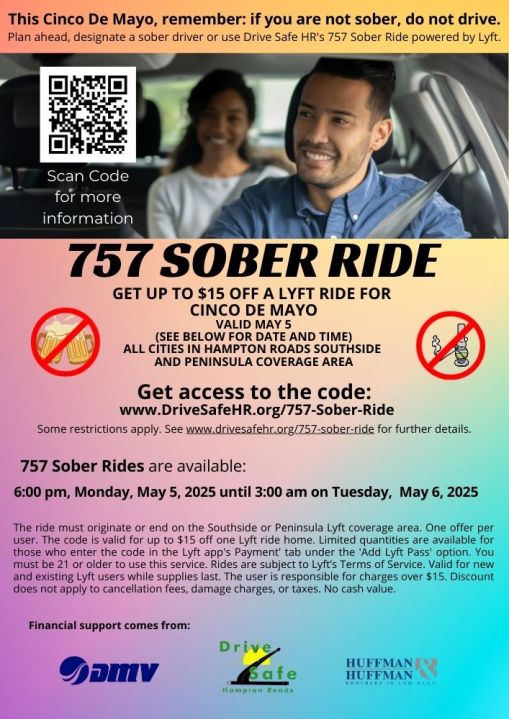 PORTSMOUTH, Va. (WAVY) — This Cinco de Mayo, May 5, Drive Safe Hampton Roads (DSHR) is offering locals a safer means of transportation, with 757 Sober Rides.