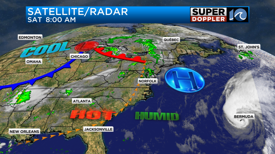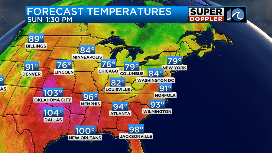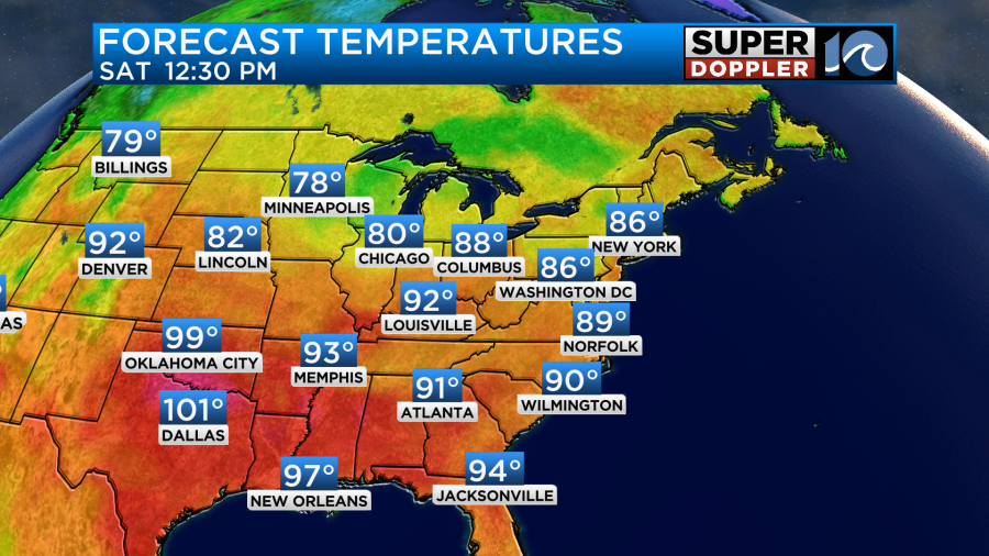 The extra heat and humidity will be some fuel for scattered thunderstorms in the afternoon and evening.