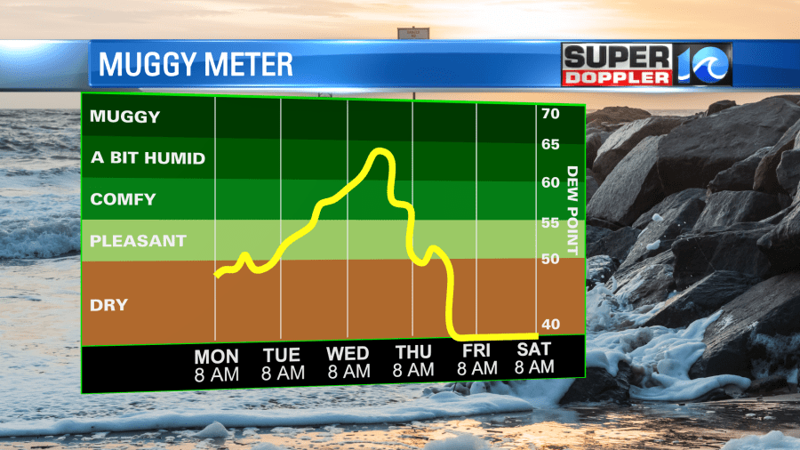We’ll be partly cloudy again tomorrow. It should be a couple of nice days in a row. However, the moisture will increase along with the warmer temps on Wednesday. Dew points will rise to the 60s while temps rise to the 70s.