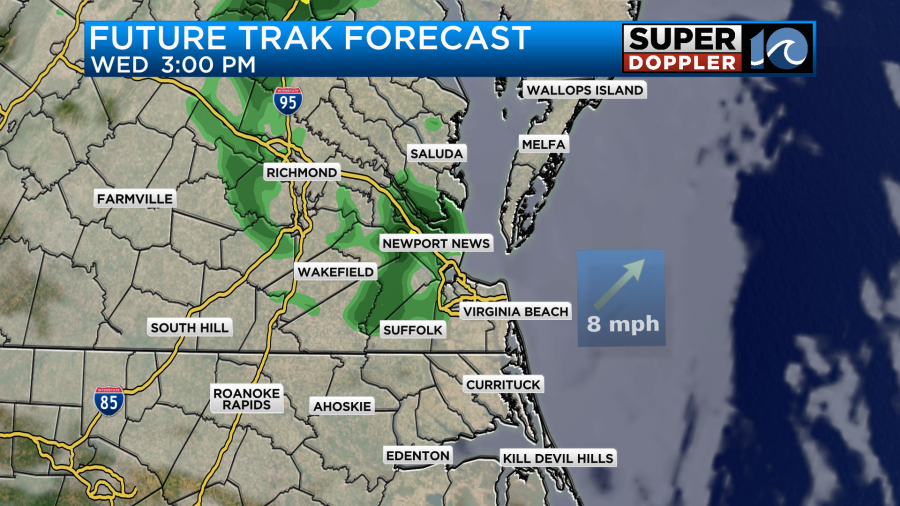 The area of low pressure moved slowly to the north/northwest. It did not move northwest/west like our Future Trak model expected. Instead it moved more northerly and then it drifted west in the evening. Now the low is weaker and inland.