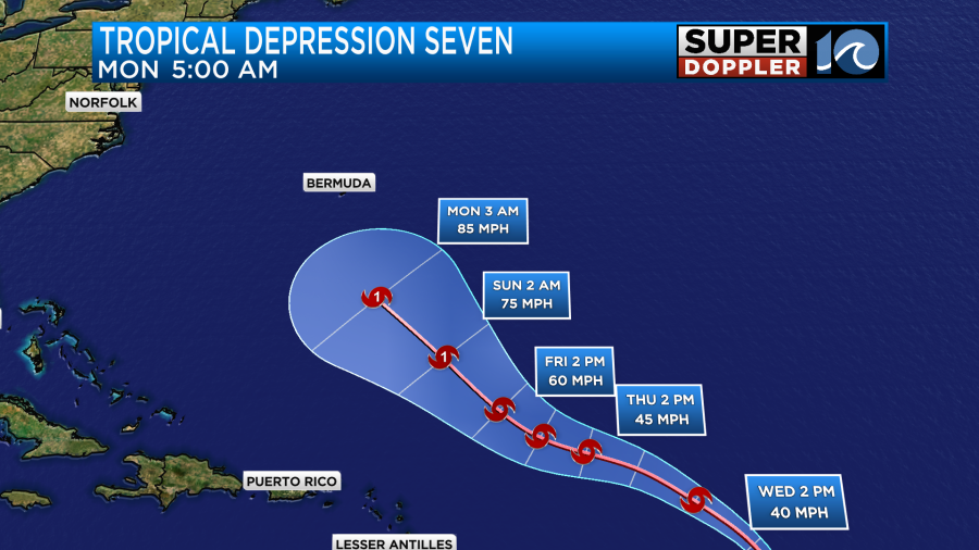 Meanwhile, the tropics are getting busy again. This morning Tropical Depression 7 formed over the central Atlantic. It is on a northwest track.