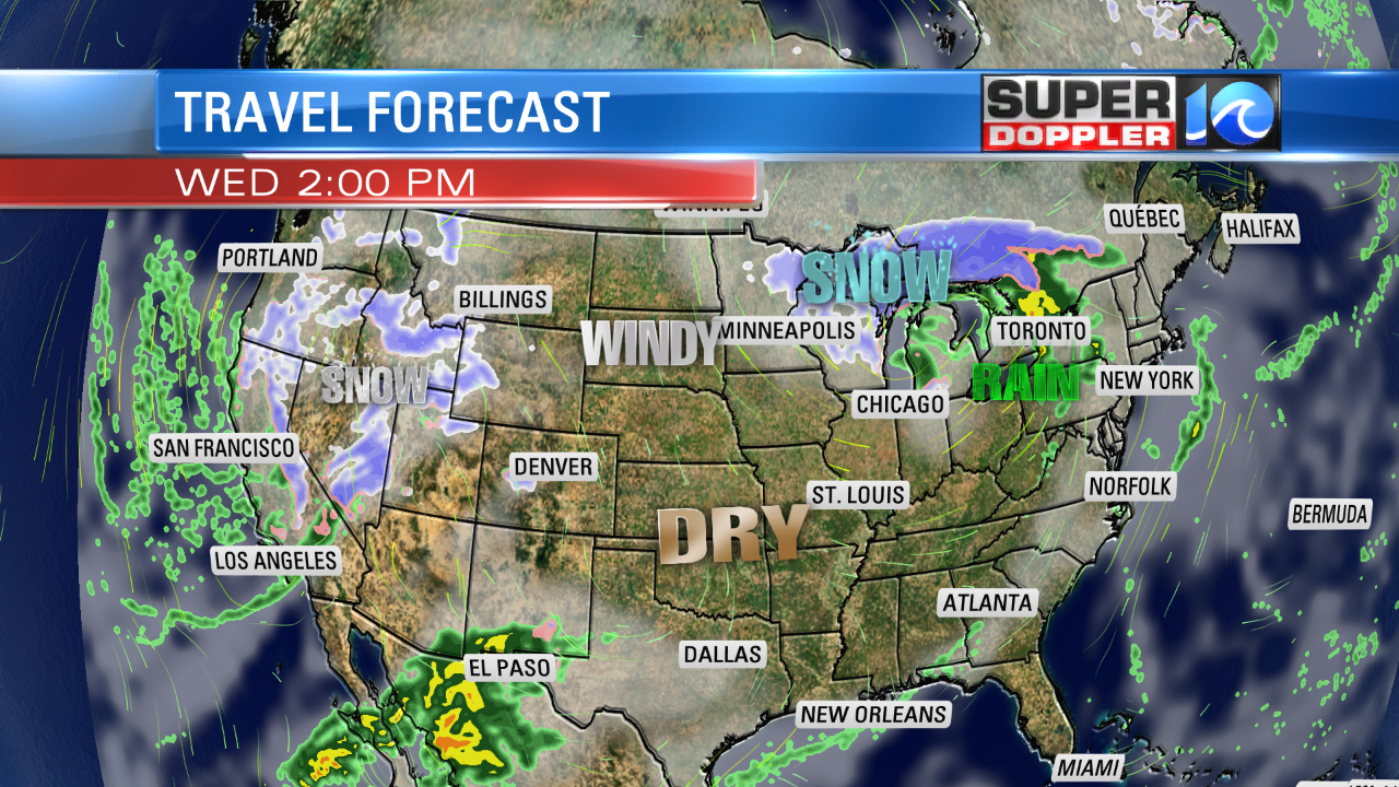 It will be good travel weather in the region. Just watch the strong wind over some of the bridges and overpasses. There will be messy weather over the central and western U.S.