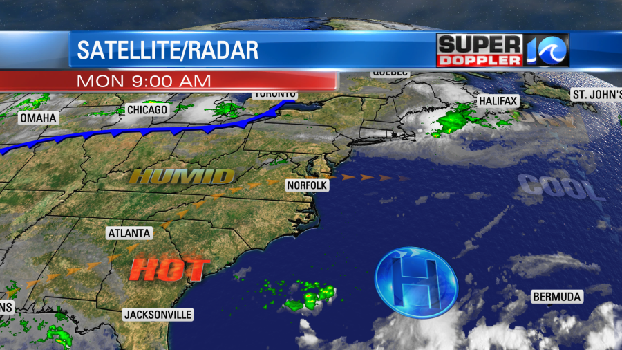 We have a large/strong area of high pressure to our southeast. There is a cool front over the Midwest that is almost stalling out.