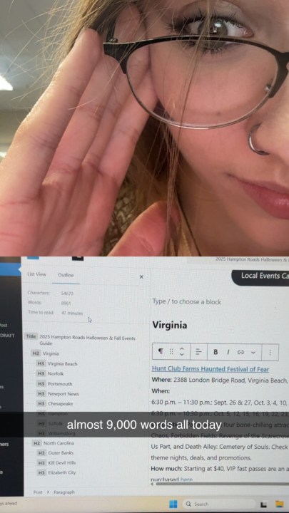 It’s October and a little over one month since my first day at WAVY, which means the second intern blog entry! There is so much I have learned with the digital department, but one the most prominent has been learning how to move efficiently, and the importance of timely news. Last week, I did a huge 2025 Halloween Events Page for the Hampton Roads area that included a lot of repeated tasks.