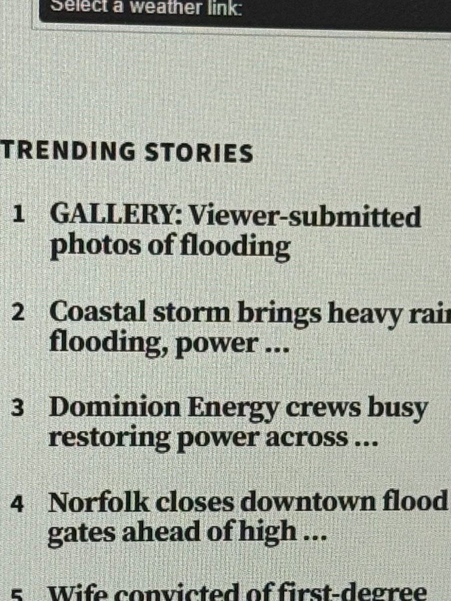 During the storms around Sept. 16, I put out a gallery article featuring photos that readers sent in showing how the storm impacted their area, specifically from flooding, strong winds leading to trees falling, damaged power lines and the occasional street kayaker. It was trending as #1 for a while and I loved seeing people from all over the Hampton Roads area want to share what was a universal experience for all of us in the region.