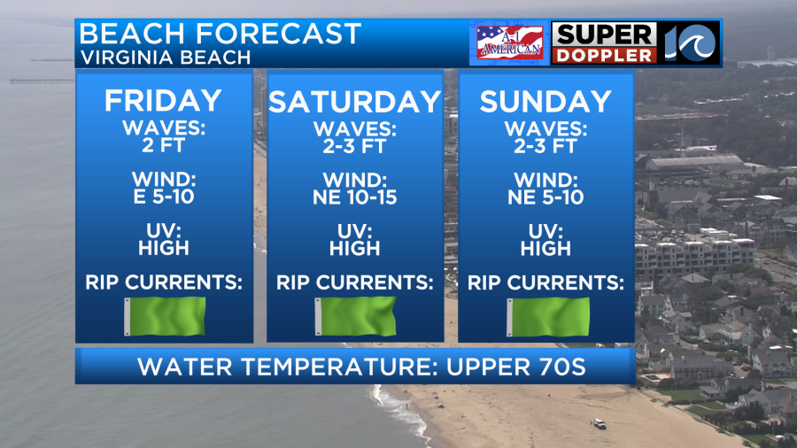 For those looking to spend some time at the beach, you are in luck! Rain chances drop as we head into Saturday and Sunday and temperatures cool into the lower and middle 80s. Humidity may be up a tad but with a low rip current risk a quick dip should help cool you right off.