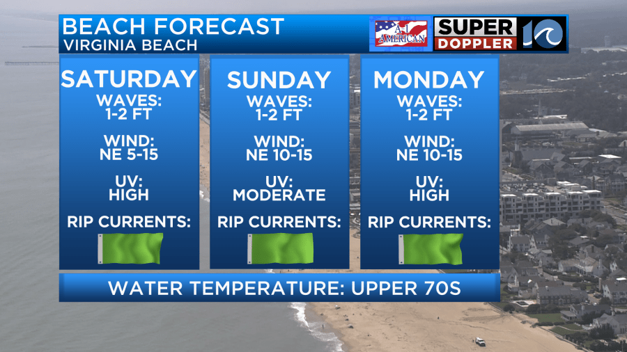 With small surf at the beach the rip current risk should stay low but check in with local lifeguards from time to time. A steady northeast breeze could cause more rip currents especially in between tides.