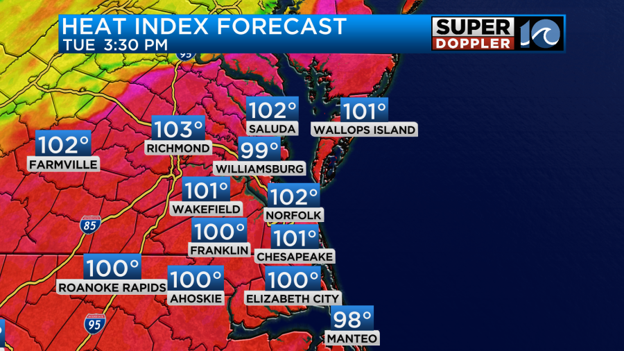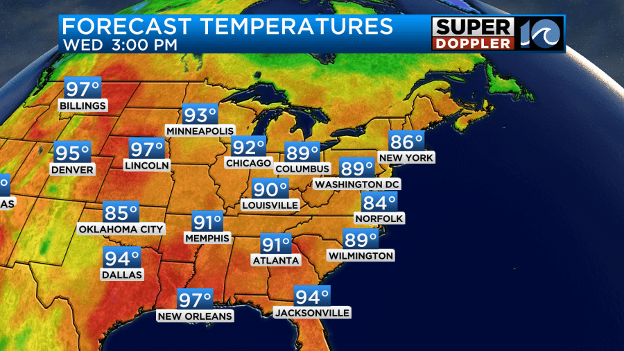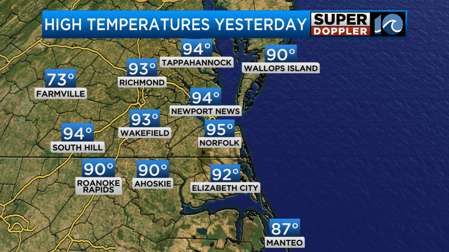 They were in the mid 70s yesterday. So that combo should make it feel a little more comfortable tolerable today. Having said that, high temps will aim for the mid-upper 90s this afternoon.