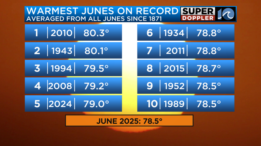 Meteorologists Steve Fundaro and Don Slater did some work recently on our local climate. They found out that we tied 8th and 9th place for the hottest Junes on record.