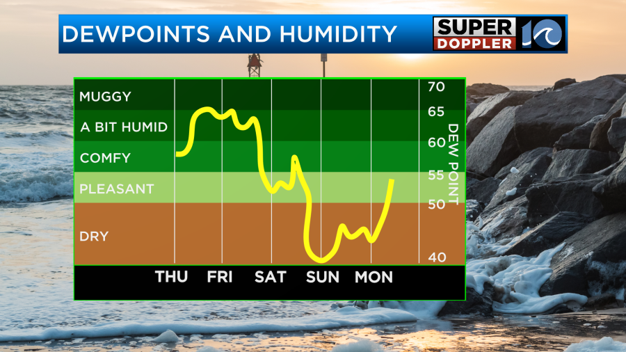 The good news is that we’ll be dry Saturday night and Sunday. Then we’ll stay dry for a few days. High temps will be near 80 on Sunday with low 80s Monday. However, we’ll heat up quite a bit more by later next week.