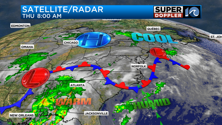There is a bigger area of low pressure to our west along with a cool front.