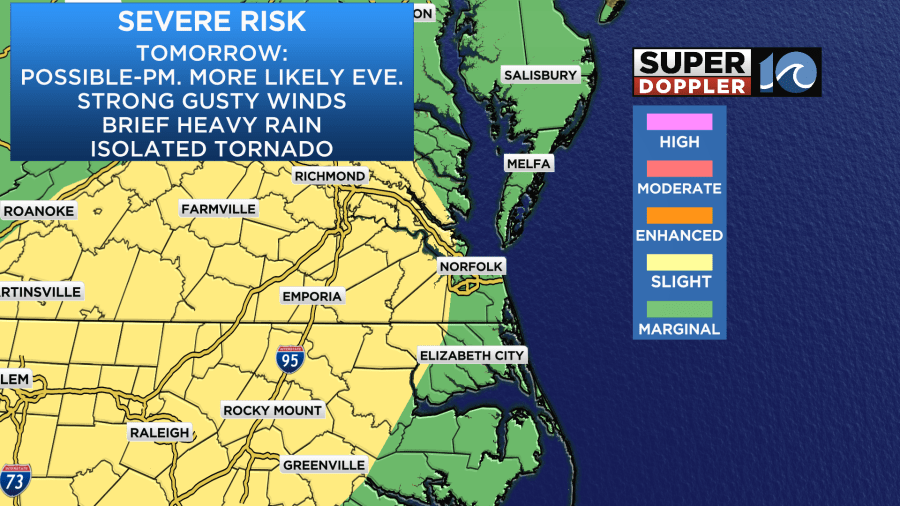 As we head into the evening the low and the cool front will be sliding in from the west. We’ll have (at a minimum) clusters of strong showers and storms in the region.
