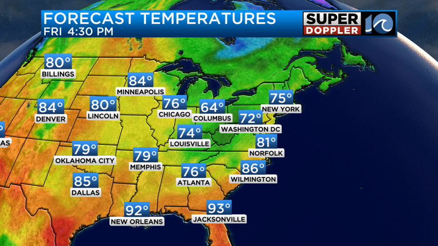 These storms will move out by tomorrow night. Then we’ll have quiet weather going into Saturday morning. High temps will be near 80 on Saturday. Humidity will drop late in the day.