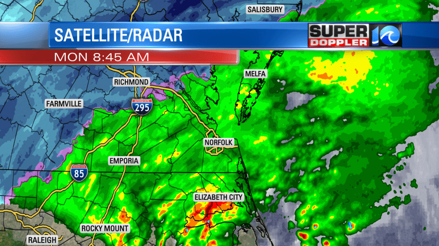 - That same strong northeast/north wind will be coming in off of the Bay (and ocean for some spots). The water temps are near 50 degrees. So that will likely create more of a mix zone than just purely snow. That is likely for Virginia Beach, northern Norfolk, northern Portsmouth, Poquoson, and Hampton.