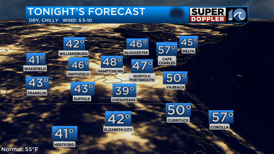 Tonight will be chilly. Low temps will be in the 40s with a few upper 30s inland.