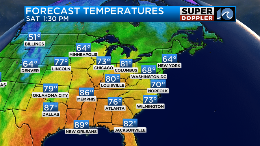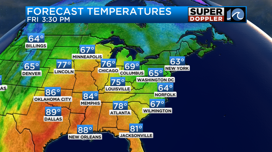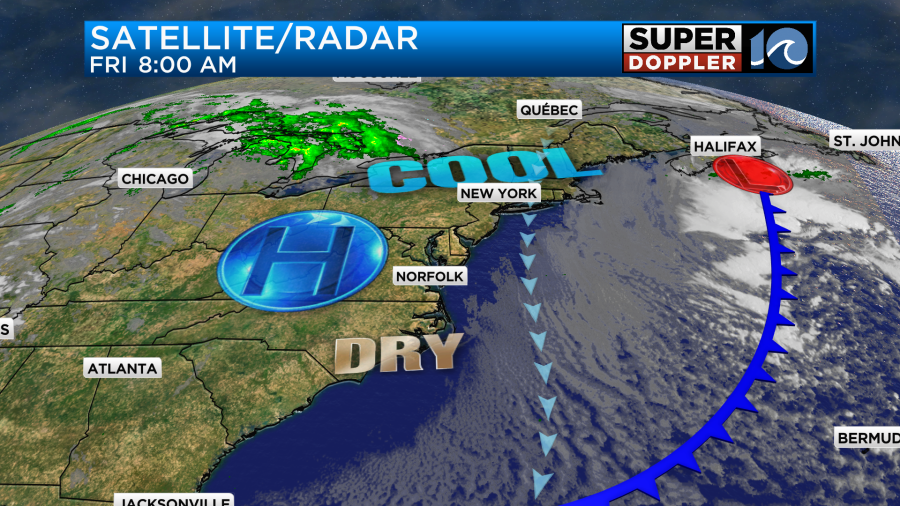 We’ll have lots of sunshine over the area today. There will be a light northerly breeze, but it won’t be too strong. High temps will make it to the low-mid 60s.