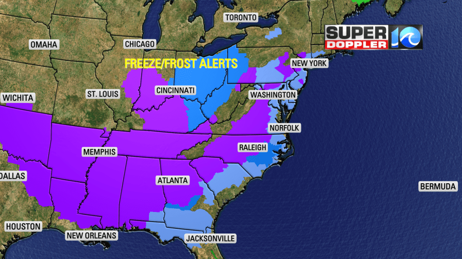A large blast of unseasonably cold air has dropped down into the eastern United States. There were numerous frost and freeze alerts that are affecting millions of people.