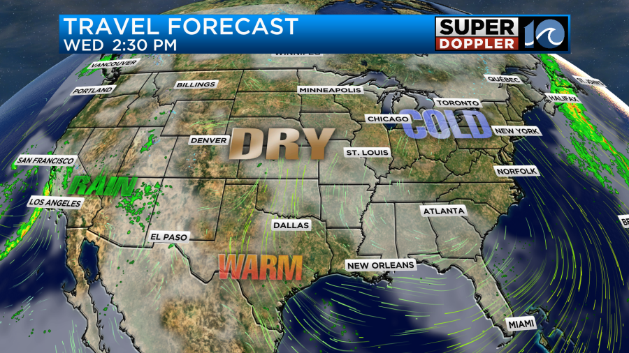 Travel weather should be good over much of the country for the next couple of days. There will be some rain in the west today and tomorrow.