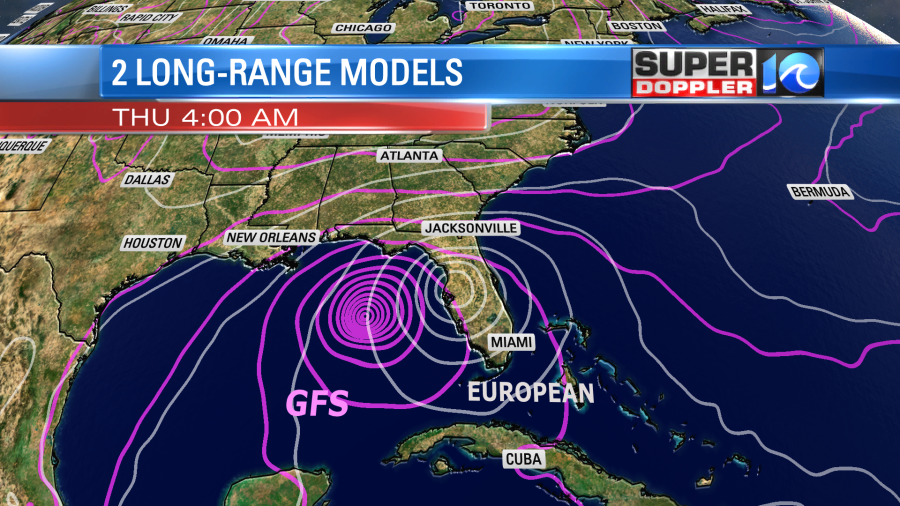 In the short term there is plenty of warm ocean water, low wind shear, and lots of humid air. By the time it moves towards the Florida coast it will start to encounter a strong cold front and increasing wind shear. There should be some much drier air to the north of it as well. This is going to be the same cool/dry air mass that will bring us a return to Fall this week. The models are in good agreement in the 2-3 day forecast, but they are pretty split in the 3-5 day forecast.