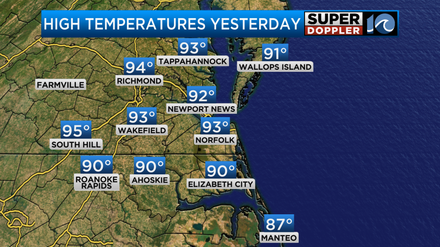 Tomorrow we’ll have similar weather. We’ll have lots of sunshine with a light northeast wind. High temps could be even hotter than today.