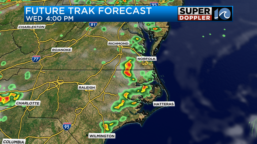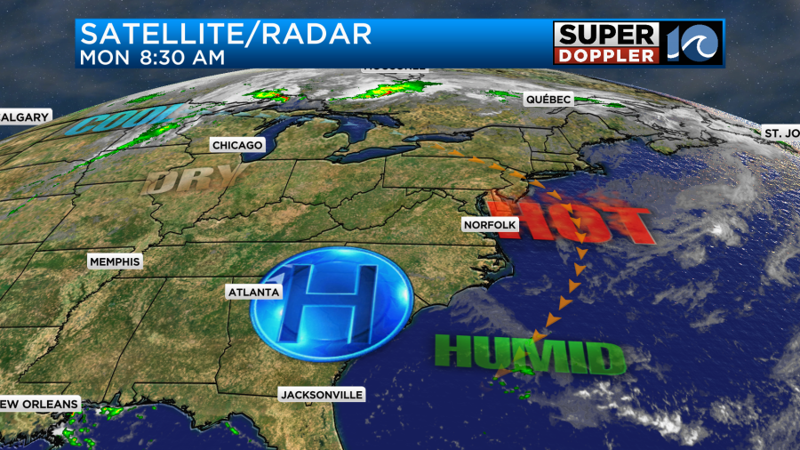 It’s possible that we’ll cool down SLIGHTLY towards midweek. This would be due to the high pressure area (and upper level ridge) breaking down a bit. So we’ll probably have a few more clouds in the region. We may also have a few thunderstorms pop up in the region.