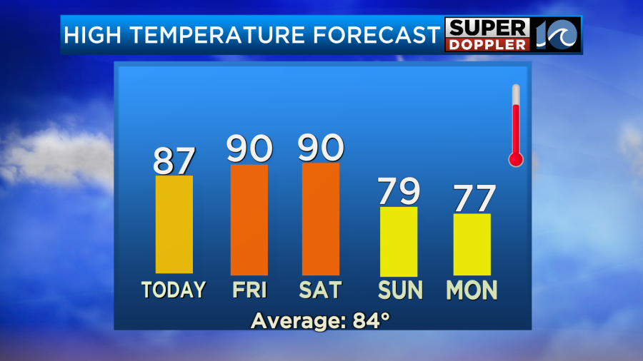 The humidity will go up a little tomorrow. So the heat indices will actually be in the low 90s. However, the humidity will be even higher on Saturday with high temps still around 90 degrees.