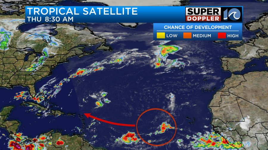 We are still tracking that area of low pressure over the east/central Atlantic. It is moving generally to the west.