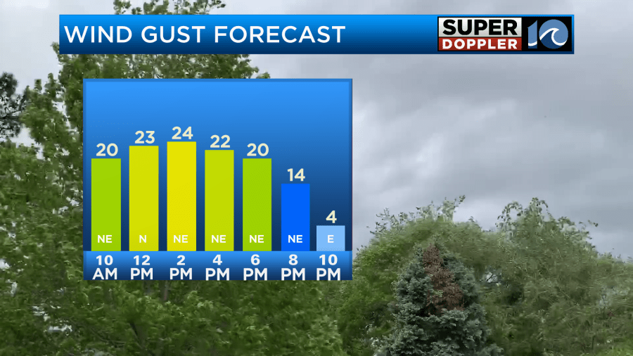 Things will settle down by this evening. It should be pleasant for dinner outside and for the evening commuters. Overnight we’ll drop down to the 60s with mostly clear skies. There might be a few 50s inland.