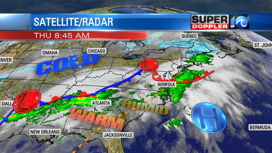 There could be some strong tornadoes out there between the afternoon and evening. Tomorrow the low will move northeast from the Tennessee River Valley to the Ohio River Valley. A cold front will roll over the Southeast, and that will create a few more strong to severe storms.