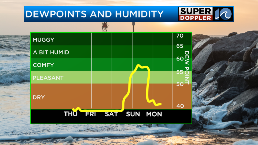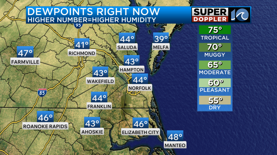 There will be less wind, but there will still be a light breeze out of the north. We will still be very dry with dew points in the 30s.
