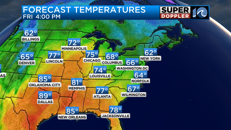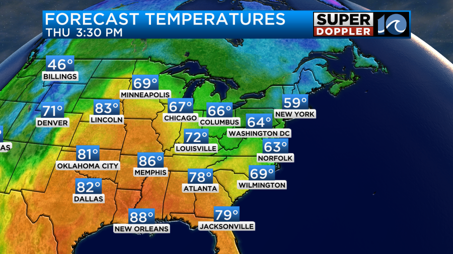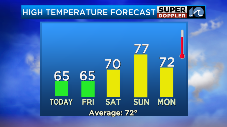 Tomorrow will be a nice day but a cool day. We’ll have lots of sunshine again, but high temps will be in the mid 60s.