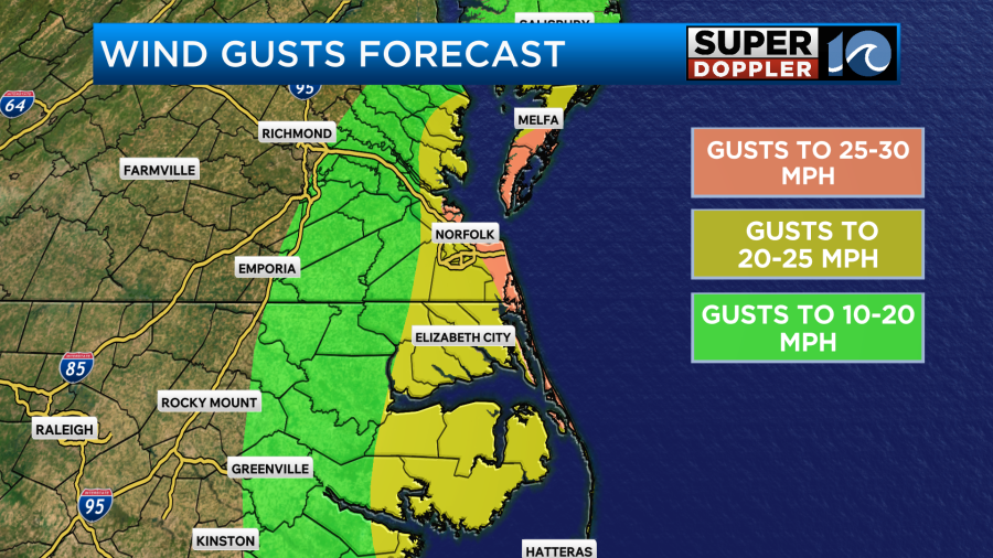 High pressure is also building into the area. So we’ll have full sunshine for most of the day. However, the strong north breeze will keep our high temps down in the low-mid 60s this afternoon.
