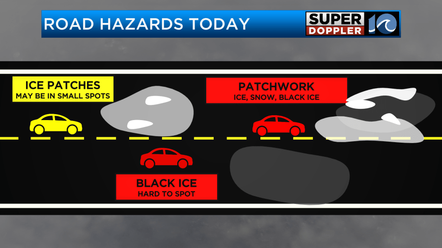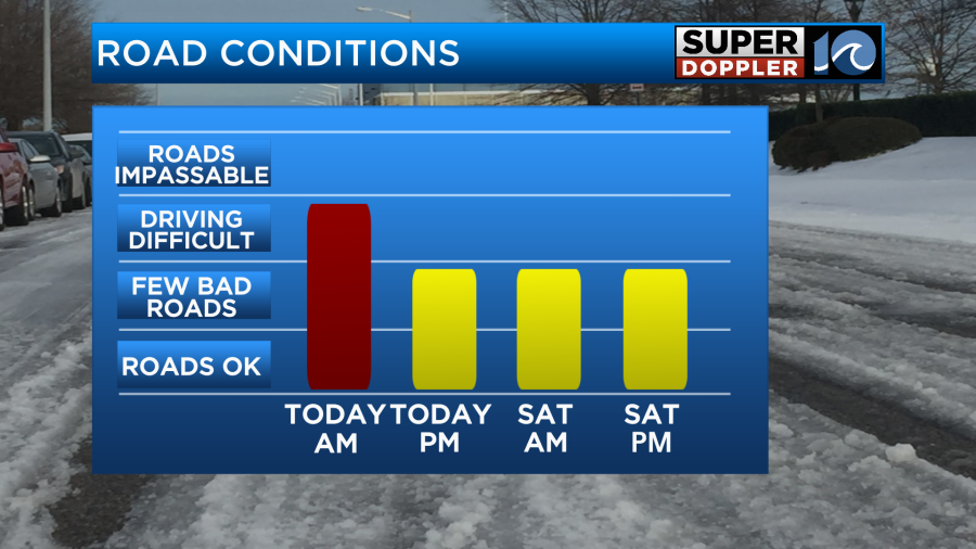 Road conditions will be tough this morning for that reason. However, there will be some more melting and drying as we go through the day. So conditions will improve a bit.