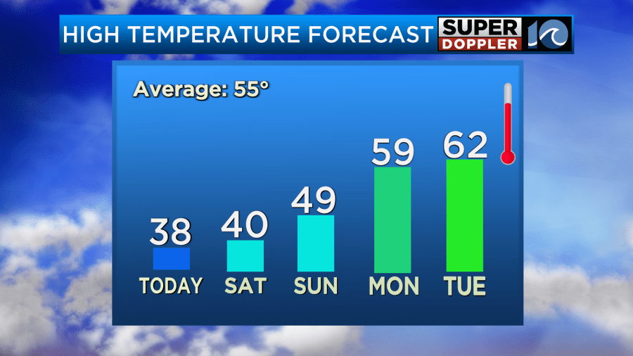 We’ll continue to warm up going into Sunday. High temps will rise to the upper 40s.