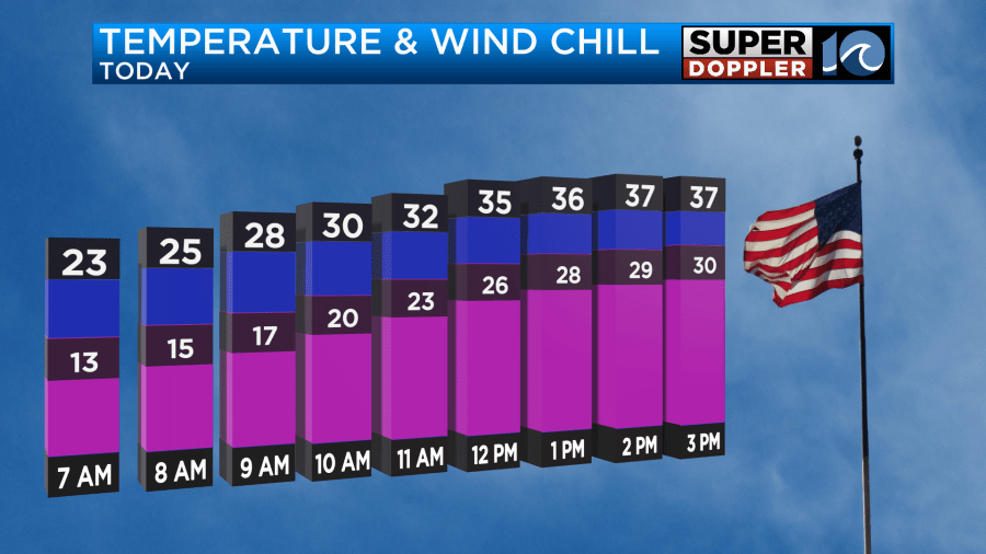 However, we’ll also have a breezy northwest wind. It will gust up to 25mph at times. This will keep our high temps in the upper 30s. That will be above freezing, but it will feel colder with the wind chill. That will make it feel like the 20s later today.