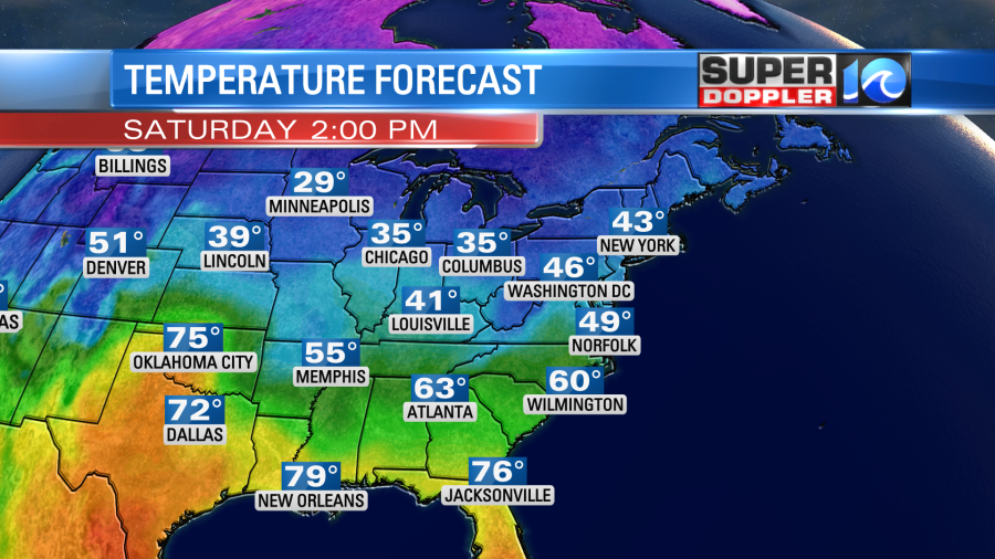 There may be enough moisture for some isolated rain showers. If the moisture lingers long enough, then it’s possible that we could have a couple of flurries by Saturday evening near the bay. We’ll see. High temps will only be in the mid-upper 40s on Saturday.