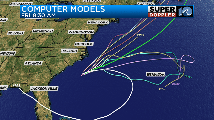 There is still a low chance that it could become a tropical system. Even if it does it would be more of a naming thing. The effects would be about the same here. At least in the short-term. As you look at the track models you may notice that a couple of them have the feature hooking back to the west in a few days. It’s possible. We’ll keep an eye on it either way.