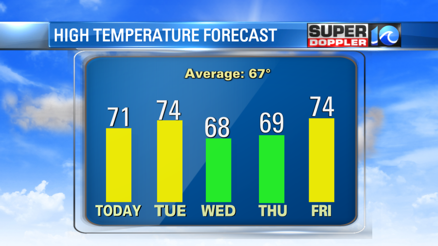 We’ll have increasing clouds today as the moisture increases. There won’t be any rain this morning. However, some spotty or isolated showers will be possible this afternoon. High temps will rise to the low 70s.