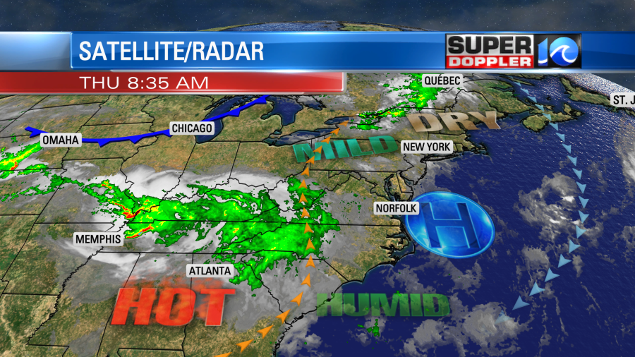 Tomorrow high pressure will move farther offshore. We’ll have a cool front to our northwest. Deep moisture will start pumping into the region.
