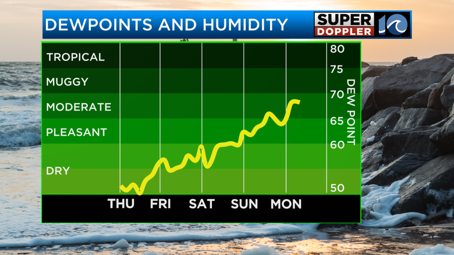 This increase in humidity early next week is a sign of things to come as our next cold front will work its way in during the middle of next week. This front will bring showers and thunderstorms along with breezy conditions. After the front passes, another shot of cooler air will move in.