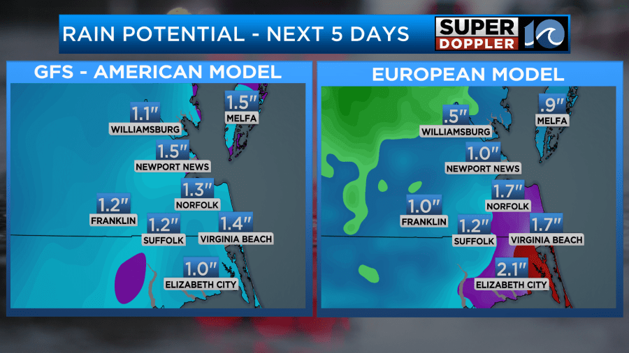 The rain will be on and off through the day, but the better chances do look like they will be in the morning for Hampton Roads.