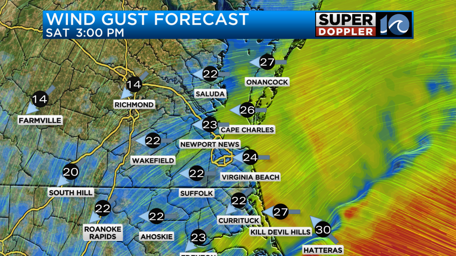 It will be breezy, but the wind still shouldn’t be too bad. Winds will gust out of the east at about 25mph. There will be some higher gusts across the Outer Banks.