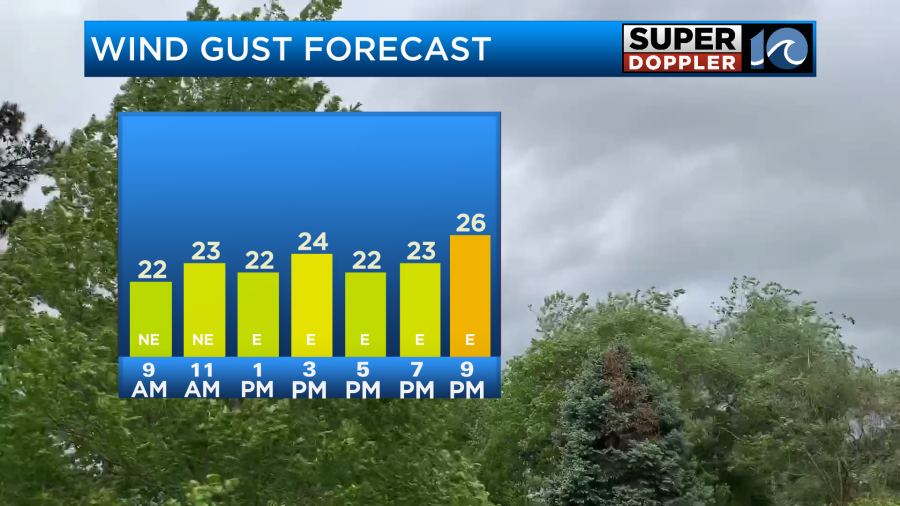 Winds will gust up to 35-40mph in the metro with gusts to 40-45mph near the shore.