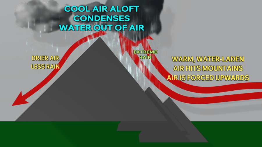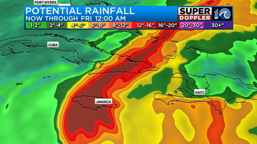Part of that is from the hurricane alone. However, some of that is due to “orographic lift”. Jamaica has a lot of mountainous terrain. When air blows in horizontally towards a mountain then it will get pushed upward.