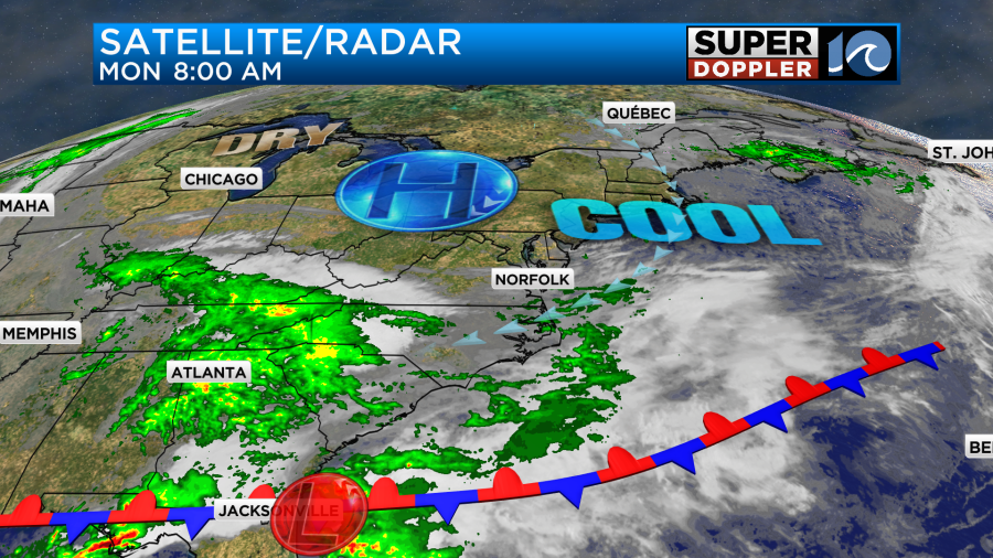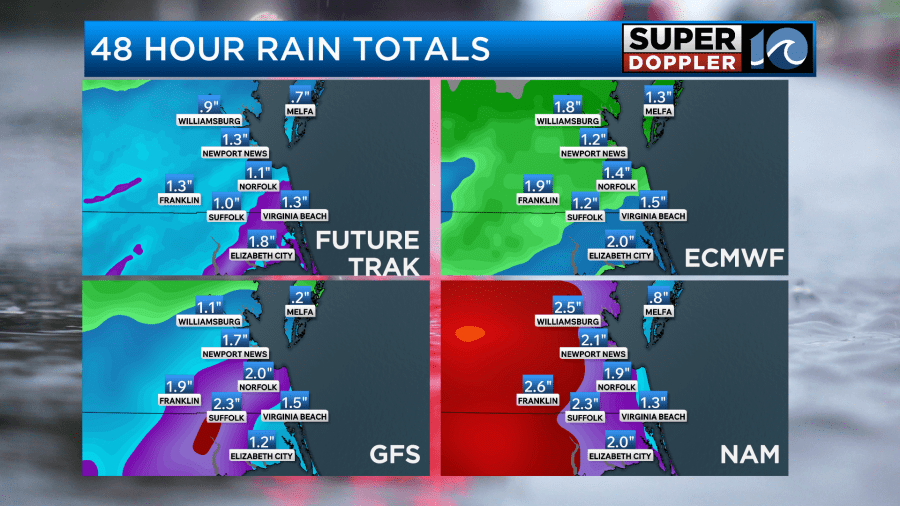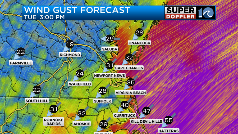 There may be a little bit of ocean overwash along the Outer Banks on Tuesday. The tides and waves definitely won’t be as bad as the last coastal system. That was during the King Tide, and that played a role. However, this time the rainfall will be much bigger. Rain will continue into Tuesday night. Then we’ll have a few more scattered showers on Wednesday as the system pushes out to sea. Rain totals are aiming for about an inch to an inch and a half.