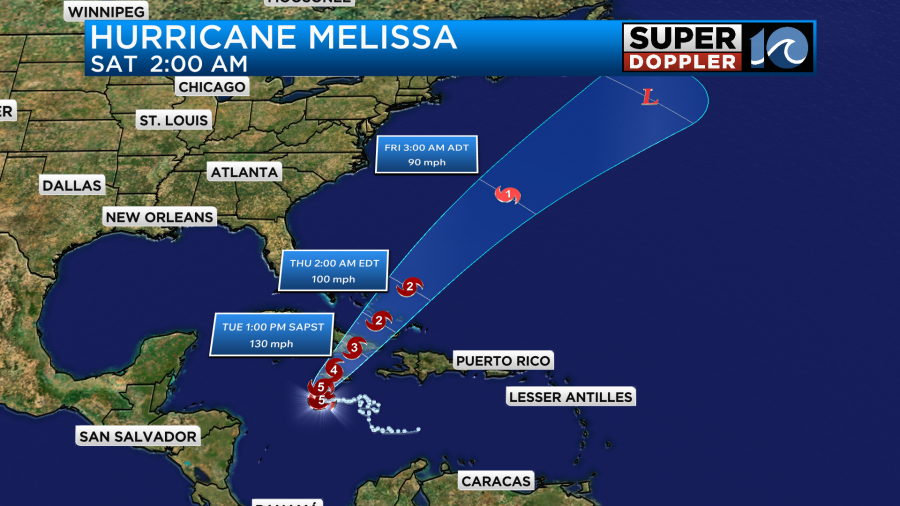 Well, I’m back from my trip to northern Arkansas. I was visiting my Dad. It was a nice trip, but I’ve had to hit the ground running this morning upon my return. Things are going to be pretty busy locally over the next few days. Then there’s also major hurricane Melissa down over the Caribbean. That’s where we are going to start the weather blog.