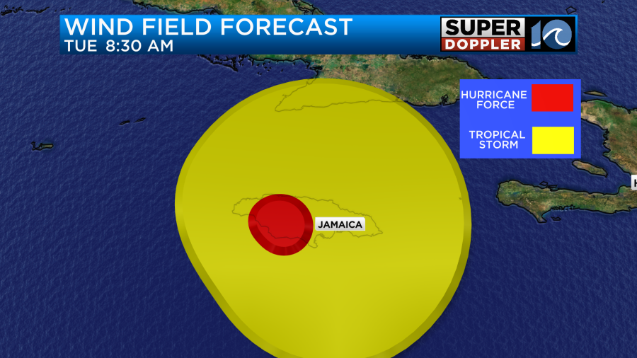 The model has a big portion of the island getting hit with hurricane-forced winds.