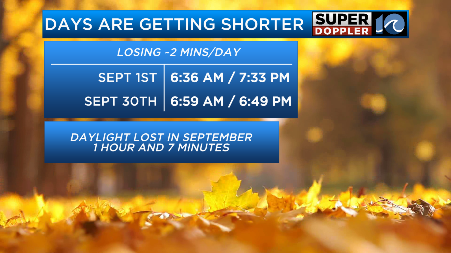 The month of September is here and that means the official start of fall is right around the corner. With the start of the fall season comes shorter days, but just how much shorter?