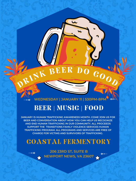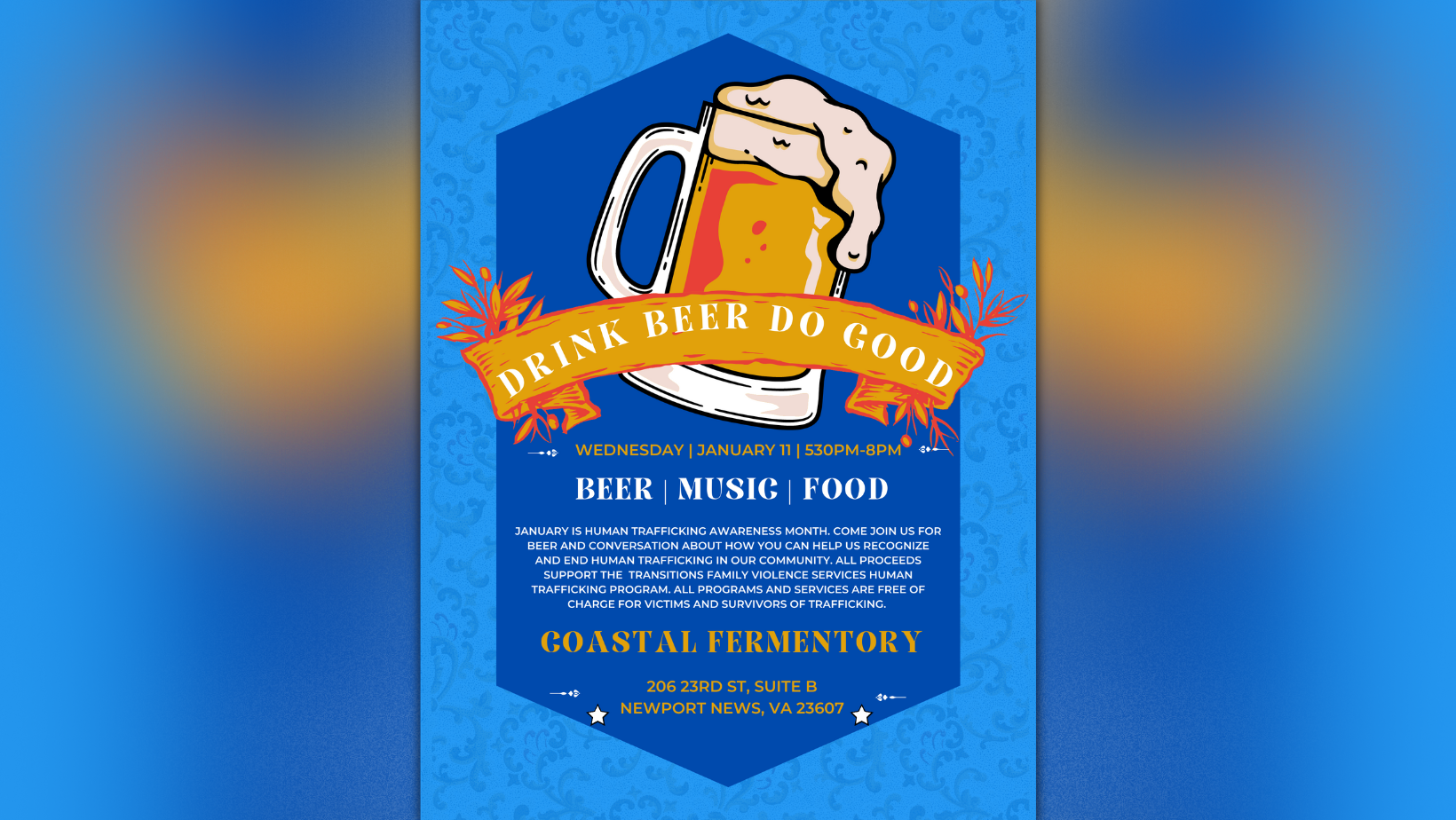 NEWPORT NEWS, Va. (WAVY) – In Newport News, Coastal Fermentory will host a Human Trafficking Awareness Month Fundraiser.