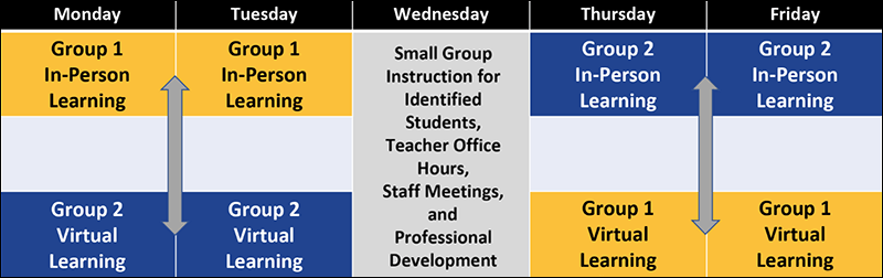 The hybrid plan would have students at school two days a week and learning from home the other three days.